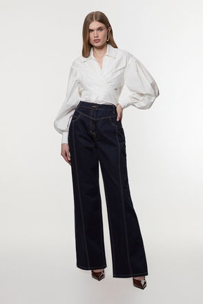 Contrast Stitch Detail Barrel Leg Denim Jean