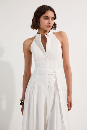 Tall Cotton Collared Halter Neck Woven Midi Shirt Dress With Dropped Waist Detail
