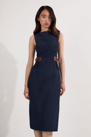 Petite Premium Tailored Linen Tab Waist Pencil Midi Dress