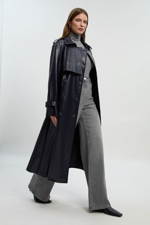 Faux Leather Belted Trench Coat