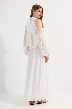Compact Stretch Viscose Crystal Embellished Cape Maxi Dress