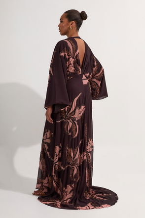 Drama Kimono Sleeve Printed And Beaded Woven Maxi Dress