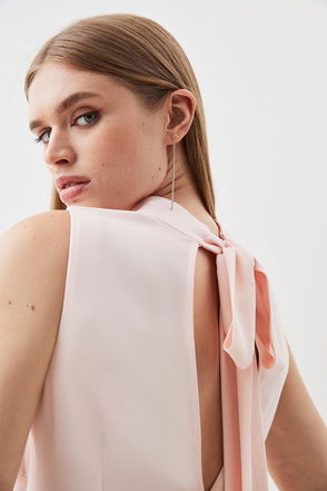 Compact Stretch Viscose Tailored High Neck Tie Detail Midi Dress