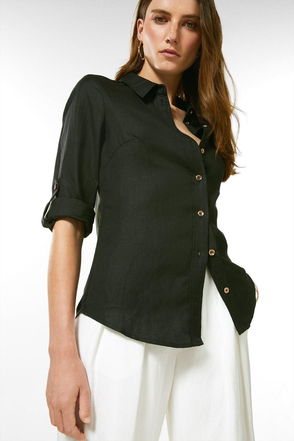 Viscose Linen Woven Button Detail Shirt