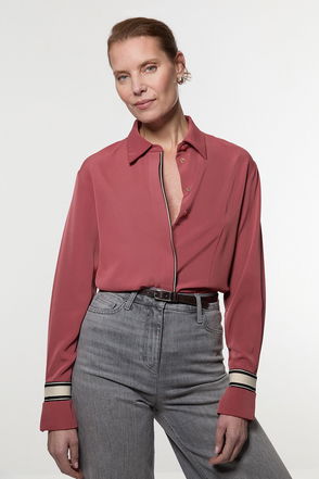 Crepe Woven Shirt With Contrast Stripe Trim