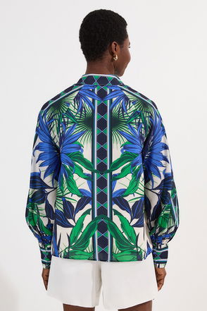 Mirrored Viscose Linen Floral Print Woven Shirt
