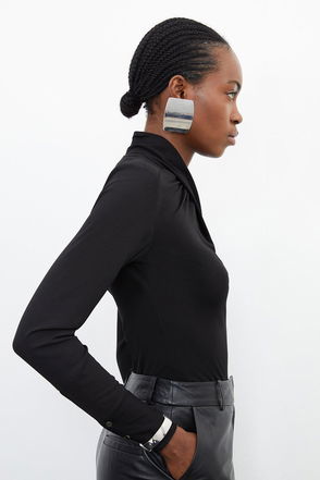 Plus Size Tencel Ruched Asymmetric Neck Long Sleeve Top