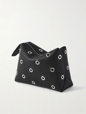 Lina Eyelet-embellished Textured-leather Pouch