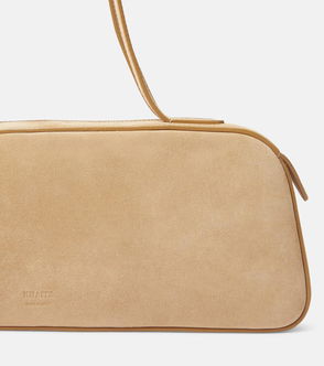 Augustina Small Suede-Trimmed Raffia Shoulder Bag