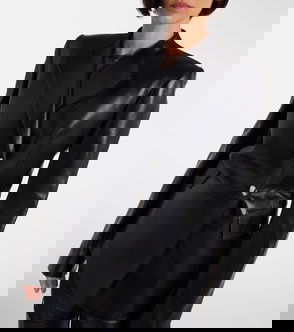 Jacobson Two-Tone Leather-Trimmed Crepe Blazer