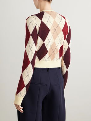 Charli Calf Hair-trimmed Argyle Cashmere And Mohair-blend Cardigan
