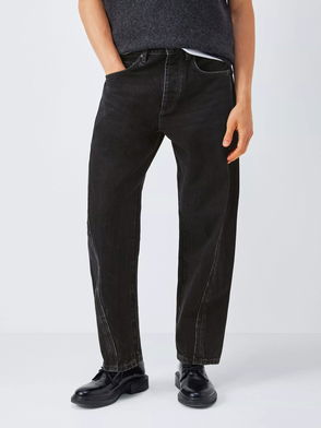 Barrel Leg Front Seam Denim Jeans, Black