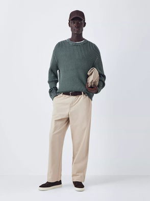 Crew Neck Ribbed Cotton Jumper