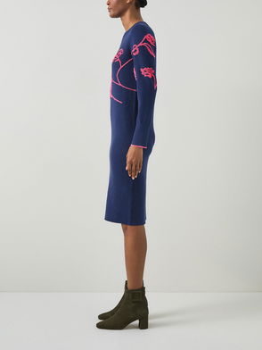 Ciara Blue & Navy Viscose Blend Button Through Knit Dress