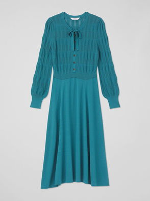 Susannah Dark Teal Tie Neck Pointelle Fit And Flare D
