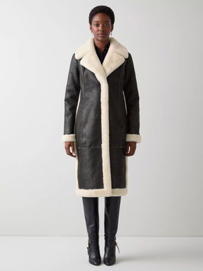 L.K.Bennett Adora Faux Fur Long Coat, Black/Cream