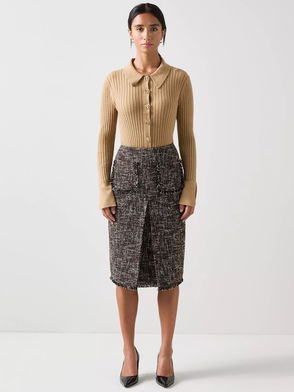 L.K.Bennett Petite Gwen Tweed Skirt, Black/Multi