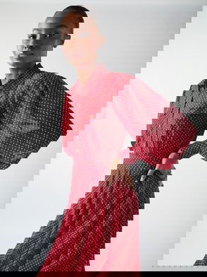 Red Cody Red Polka Dot Print Pocket Shirt Dress