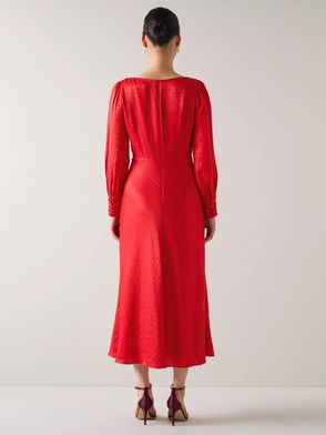 L.K.Bennett Lainey Tie Waist Midi Dress, Red Salsa