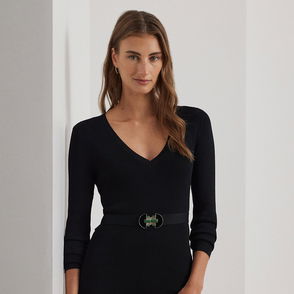 Belted Rib-Knit V-Neck Jumper