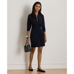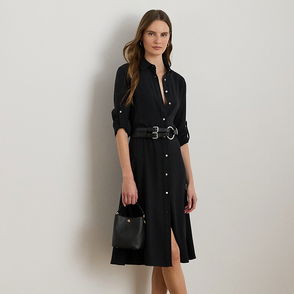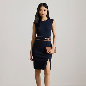 Buckle-Trim Herringbone Cap-Sleeve Dress