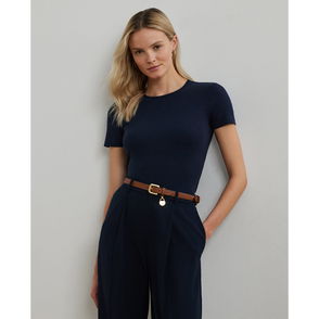 Linen-Blend Short-Sleeve V-Neck Jumper