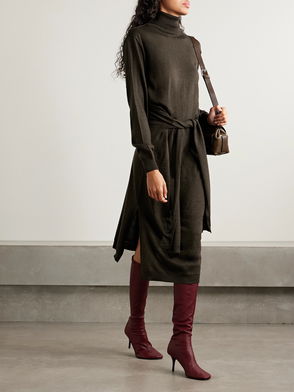 Wrap-Effect Draped Cotton-Poplin Midi Shirt Dress