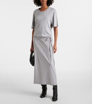 Twisted Long-Sleeves Silk-Blend Midi Dress
