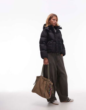 Kids' Batwing Hooded Puffer Gilet, Jet Black
