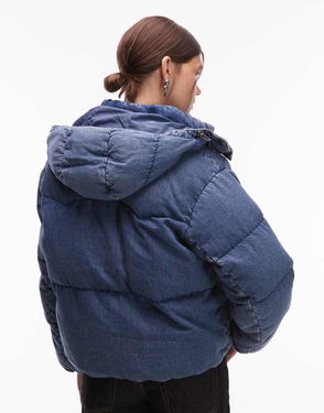 Balloon Sleeve Denim Trucker Jacket In Blue
