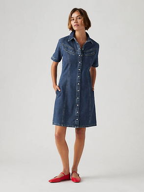 Louisa Short Sleeve Denim Dress (Plus Size)