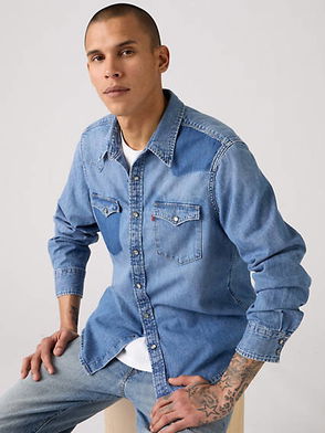 Contrast Collar Relaxed Fit Western Denim Shirt