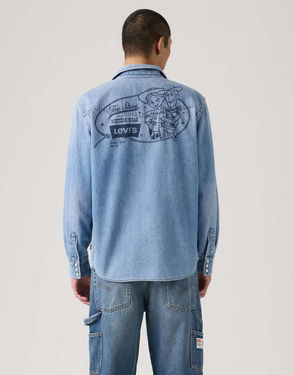 Toy Story Unisex Western Shacket With Back Print In Light Wash Blue