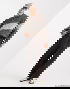 Redwood Chest Stripe Rugby Knit Jumper In Brown Marl