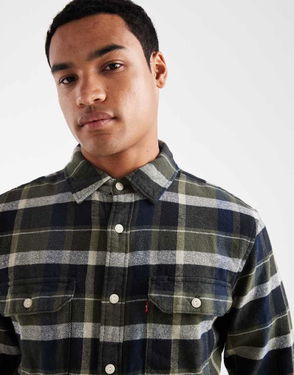 Workwear Capsule Badge Logo Short Sleeve Worker Shirt In Dark Green