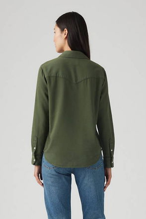 Cotton Regular Fit Stripe Zandt Cropped Shirt, Dark Green