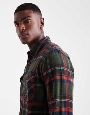 Relaxed Fit Western Shirt In Dark Green Plaid