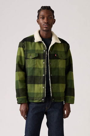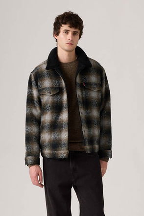 Relaxed Fit Plaid Sherpa Trucker Jacket