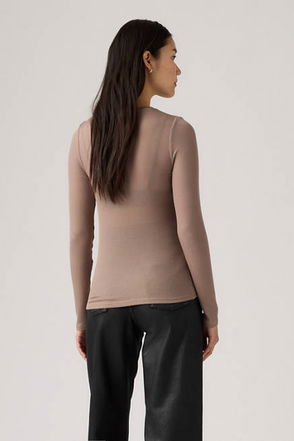 Nina High Neck Long Sleeve T-shirt In Taupe