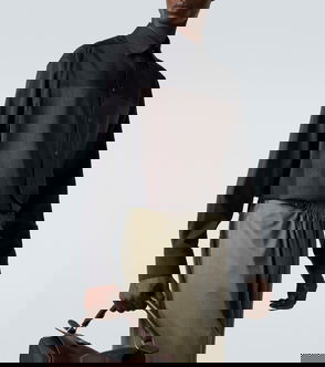 Brand-Embroidery Patch-Pocket Long-Sleeve Cotton Shirt
