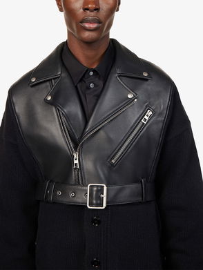 Hybrid Notched-Collar Leather And Wool Cardigan
