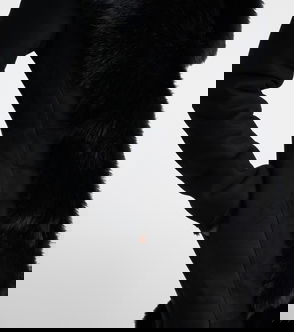 Faux Fur-trimmed Leather Coat