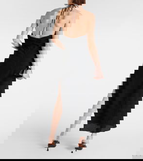 Floral-appliqué Off-shoulder Silk Midi Dress