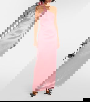 Floral-appliqué Silk Satin Gown