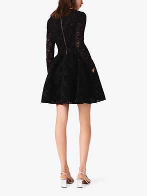 Flared Long-Sleeve Stretch-Velvet Mini Dress