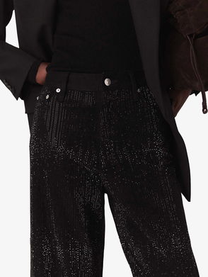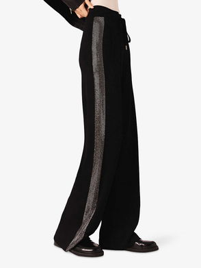 Rhinestone-Stripe Wide-Leg Woven Trousers