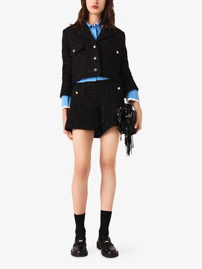 Beaded Removable-Collar Stretch Wool-Blend Cardigan