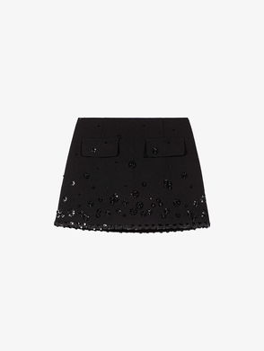 Rhinestone-Embellished Mid-Rise Tweed Shorts