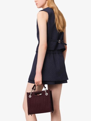 Rhinestone-Embellished Pleated Denim Mini Skirt