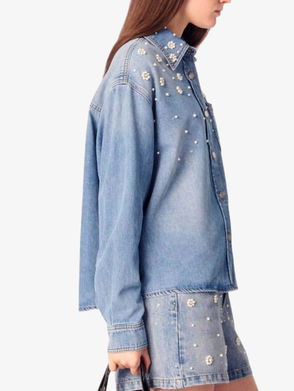 Rhinestone-Embellished Removable-Collar Cotton Shirt
